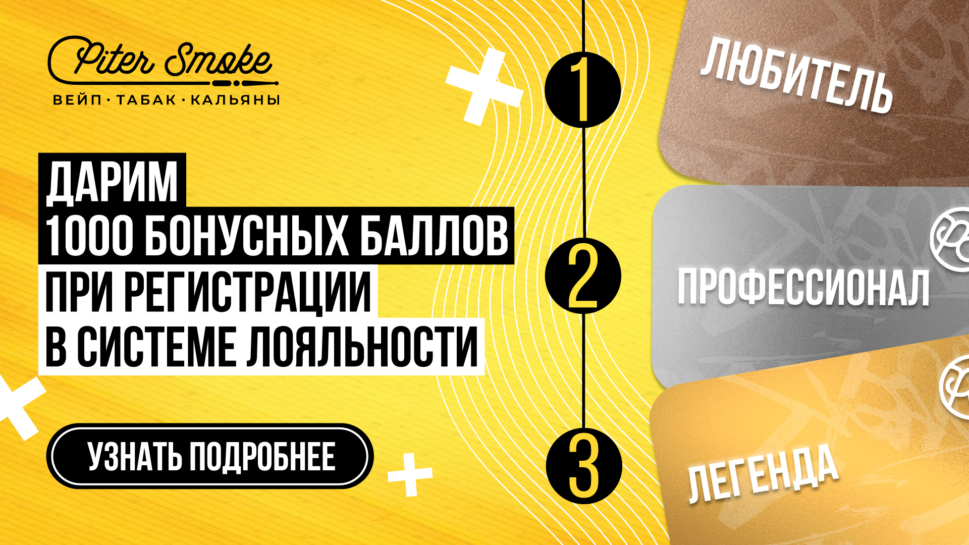 Данный Сайт является интернет-витриной и не является рекламой, так как предназначен для ограниченного круга лиц, а именно для совершеннолетних потребителей табачной продукции (граждан России старше 18 лет) для предоставления им достоверной информации об основных потребительских свойствах и качественных характеристик табачной продукции и аксессуарах для курения (п.1 и п.2 ст.10 Закона «О защите прав Потребителя»). Представленную продукцию возможно приобрести только в сети розничных магазинах. Мы не осуществляем реализацию табачной и никотинсодержащей продукции дистанционным способом.